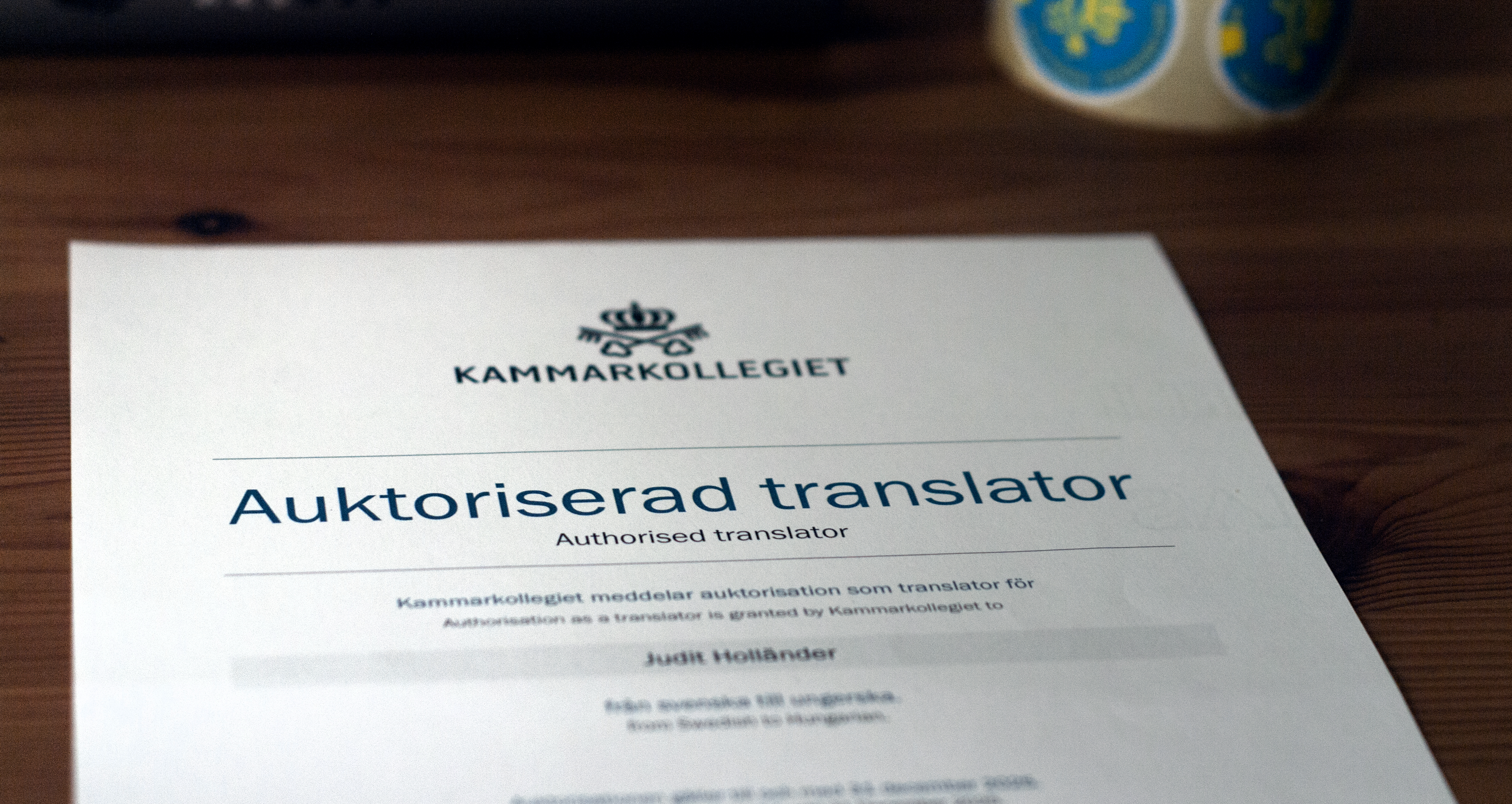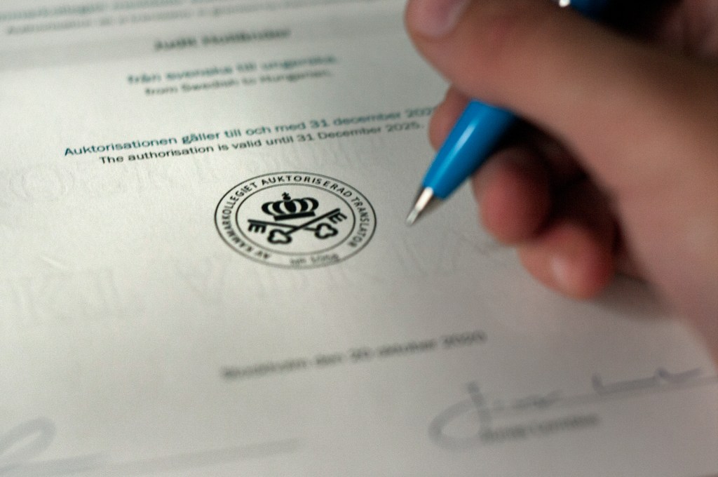 Az alábbi honlapon ellenőrizhető, hogy ki rendelkezik Svédországban a Kammarkollegiet által kiadott fordítói engedéllyel. A keresőablakba írja be a nevem vagy a pecsétszámom (1058).